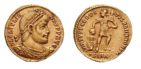 Ascendió primero al hermano mayor, Galo, pero ante las primeras sospechas de sedición lo mandó prender y ejecutar. Quedaba solamente Juliano, que había sido confinado durante toda su vida en Nicomedia y Anatolia a cargo de preceptores eclesiásticos que lo atiborraron de dogma religioso, rodeado de espías y temiendo constantemente por su vida. Por su propia cuenta, el muchacho había desarrollado el gusto por la literatura y la filosofía, y nadie esperaba mucho de él cuando fue enviado al ejército del Rhin. Sin embargo, aprendió tan pronto como pudo todo lo concerniente a tácticas militares y se transformó en un general excelente que mantuvo a raya a los bárbaros francos y germanos, lo cual le valió una fama inmediata en todo el Imperio. Desde luego, esa misma fama fue la que provocó la desconfianza de Constancio y estuvo a punto de hacerle correr la misma suerte que su hermano. De hecho, fue proclamado César por sus tropas y, muy a su pesar, ya estaba a punto de trabar combate con el Emperador, cuando la muerte de Constancio sorprendió a todos. Y mucho más cuando entre los papeles de éste hallaron un testamento que ratificaba a Juliano, su enemigo, como sucesor, pues no había alcanzado a modificar el documento cuando se disponía a atacar.