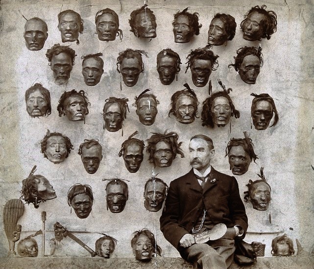 El papa Formoso, por Jean Paul Laurens (1870) Cabezas de maoríes en exposición El monje Rasputín Jeremy Bentham en exhibición